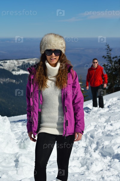 Молодая пара на зимних каникулах