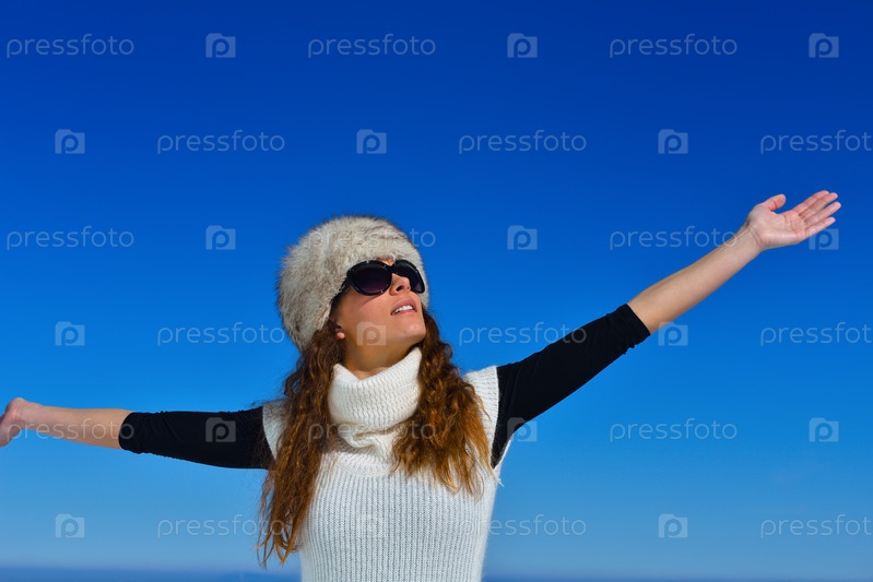 Счастливая женщина зимой