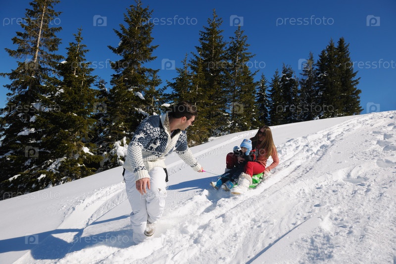 Семья отдыхает на зимних каникулах