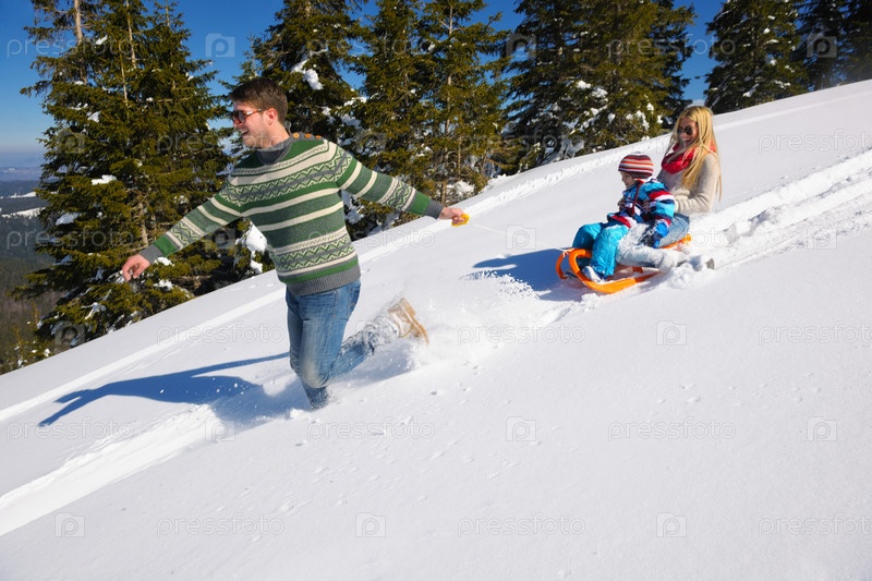 Семья отдыхает на зимних каникулах