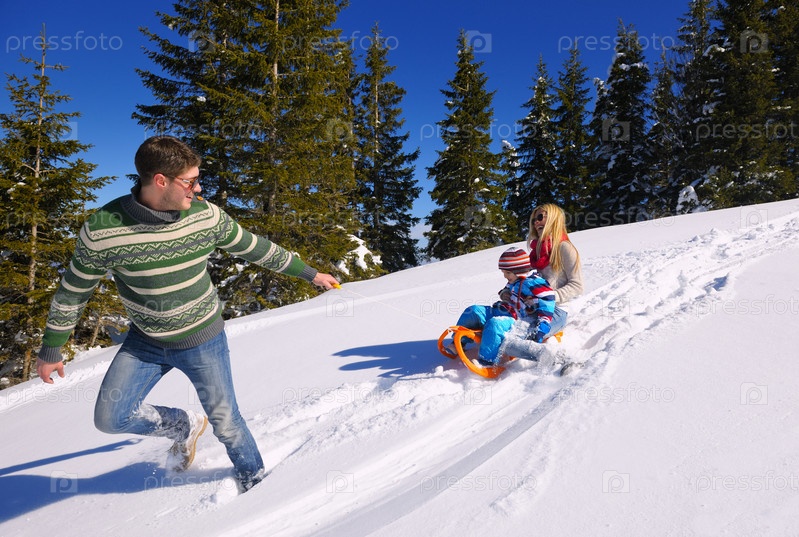 Семья отдыхает на зимних каникулах