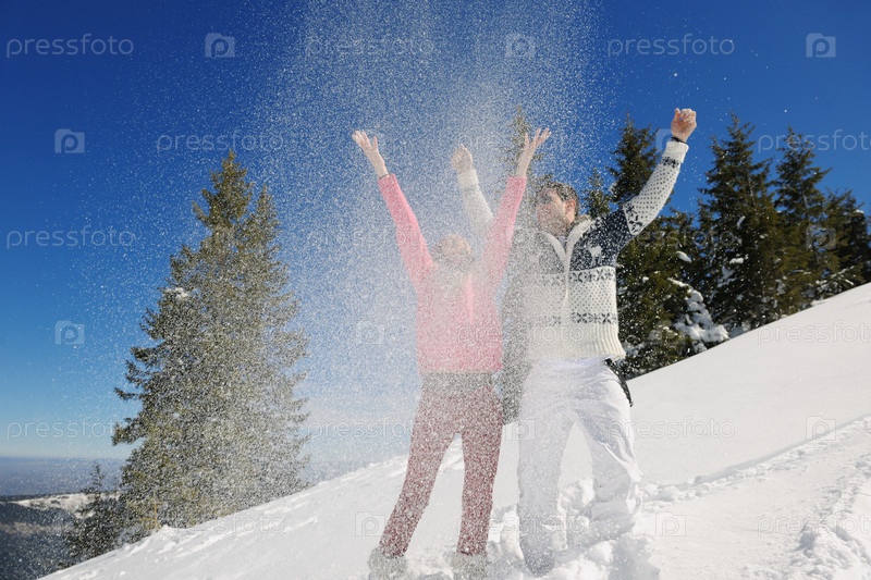 Молодая пара на зимних каникулах
