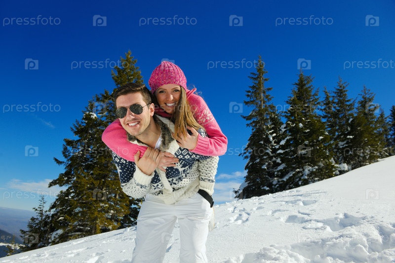 Молодая пара на зимних каникулах