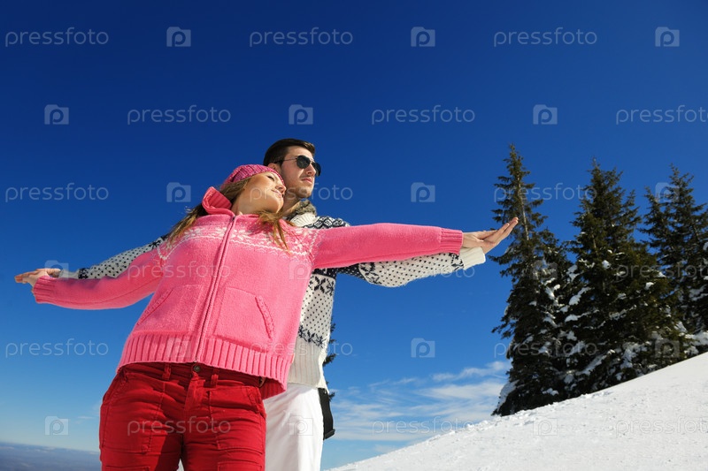 Молодая пара на зимних каникулах