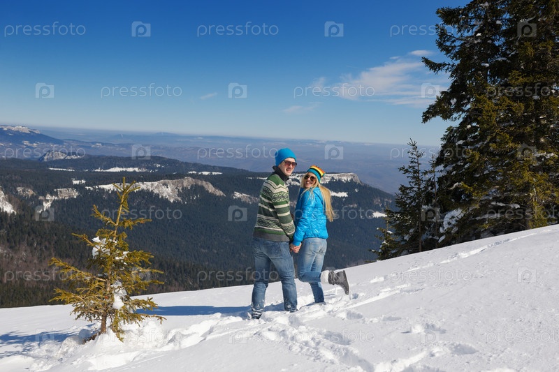 Молодая пара на зимних каникулах