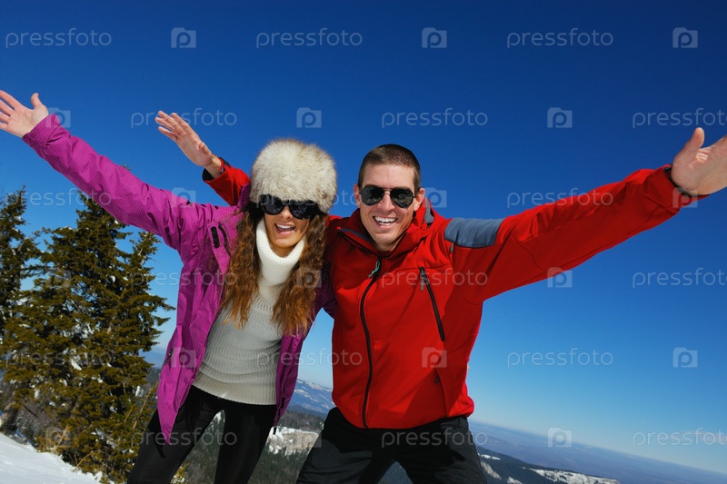 Молодая пара на зимних каникулах