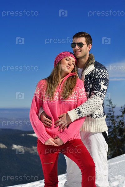 Молодая пара на зимних каникулах