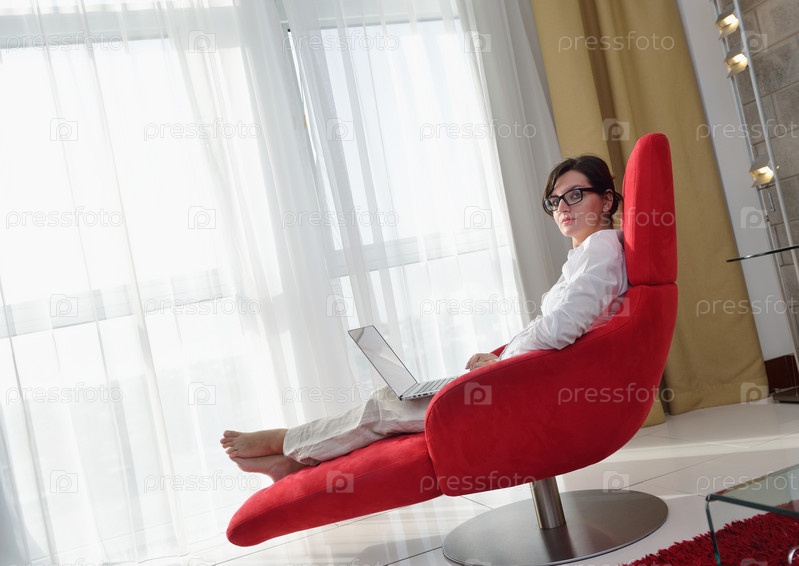 Женщина использует ноутбук дома