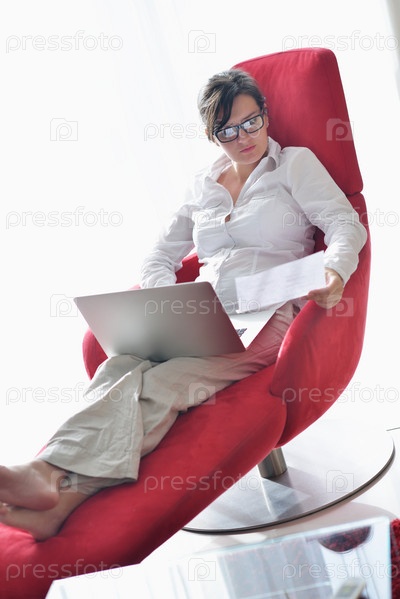 Женщина использует ноутбук дома