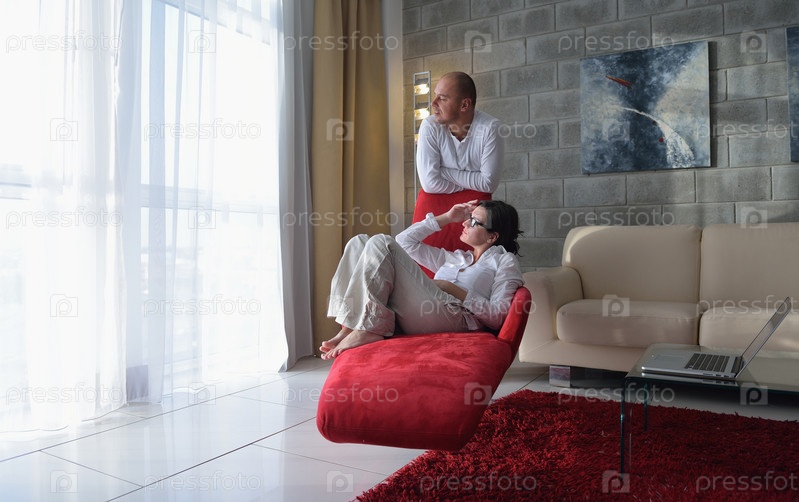 Счастливая молодая пара дома