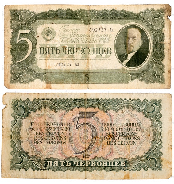 СССР, 1937 год. Банкнота достоинством 5 червонцев с портретом Владимира Ленина