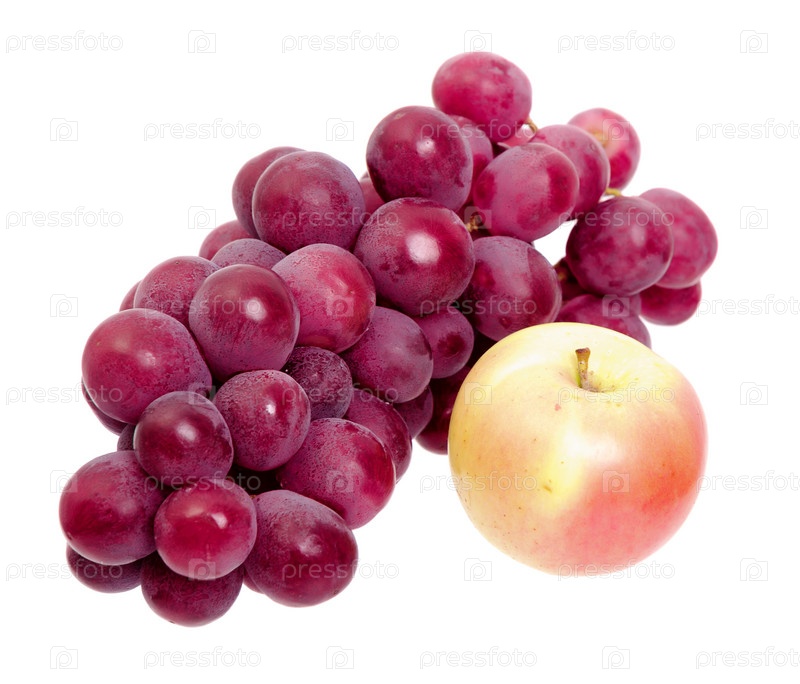 Гроздь красного винограда и яблоко, изолированные
