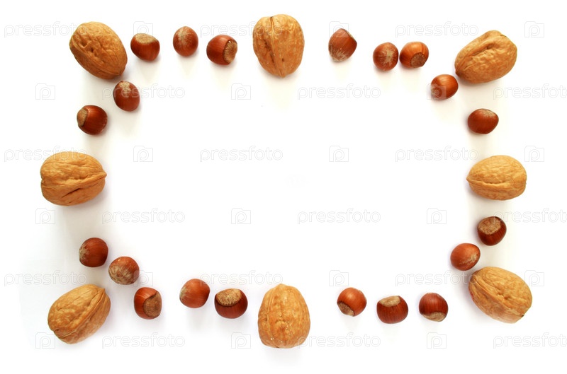 Рамка из орехов на белом фоне