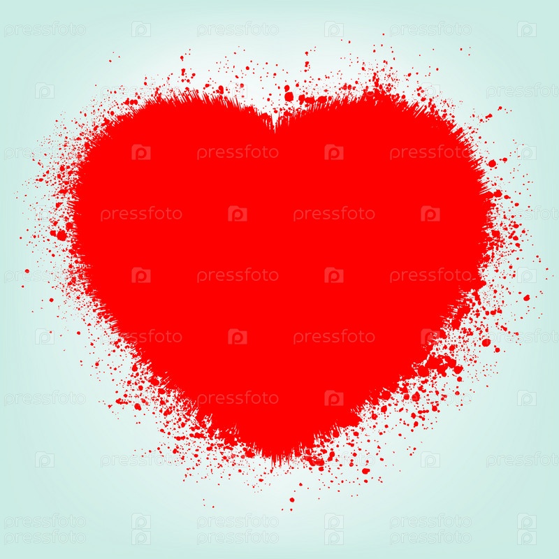 Алое сердце с каплями на голубом фоне, иллюстрация
