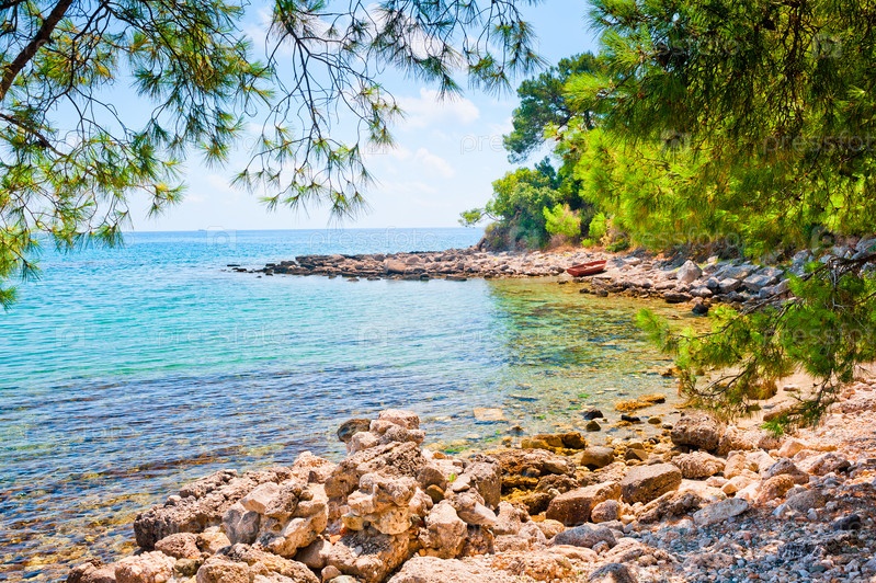 Скалистый пляж и живописный сосновый лес