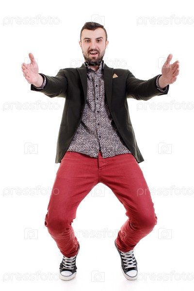 Счастливый молодой человек на белом фоне