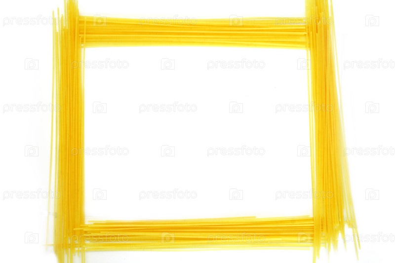 Рамка из макарон на белом фоне