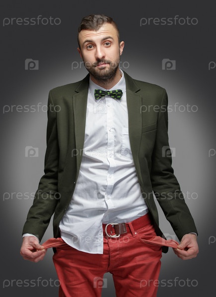 Молодой мужчина в зеленом костюме без денег