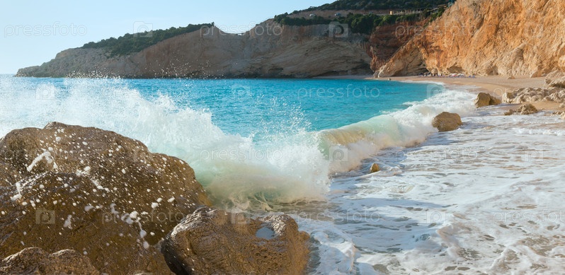 Волны прибоя на пляже Порто Кацики (Лефкада, Греция)