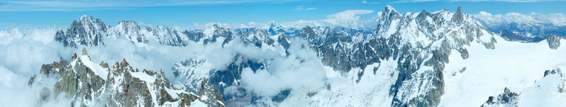 Горный массив Монблан. Панорама (вид с горы Эгюий дю Миди, Франция)