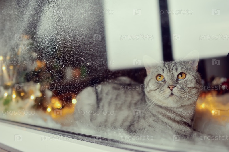 Кот в окне зимой
