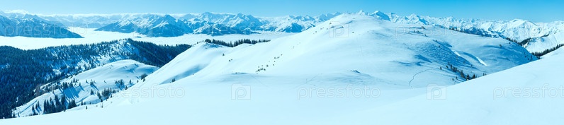 Утреняя зимняя панорама гор, область Хохкениг, Австрия