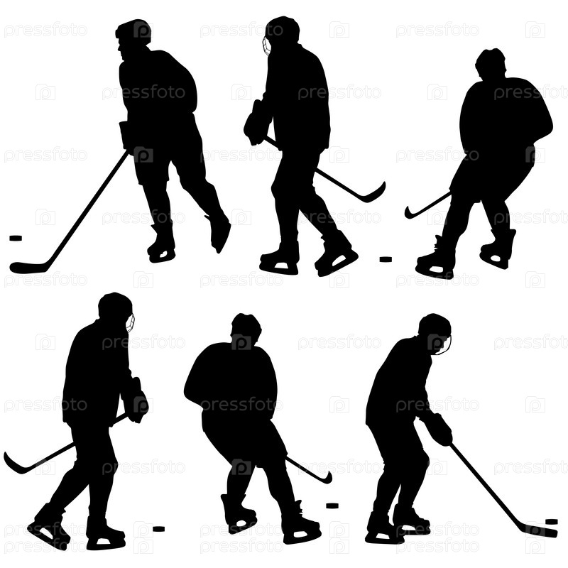Набор силуэтов хоккеистов. Изолированные на белом. Векторные иллюстрации