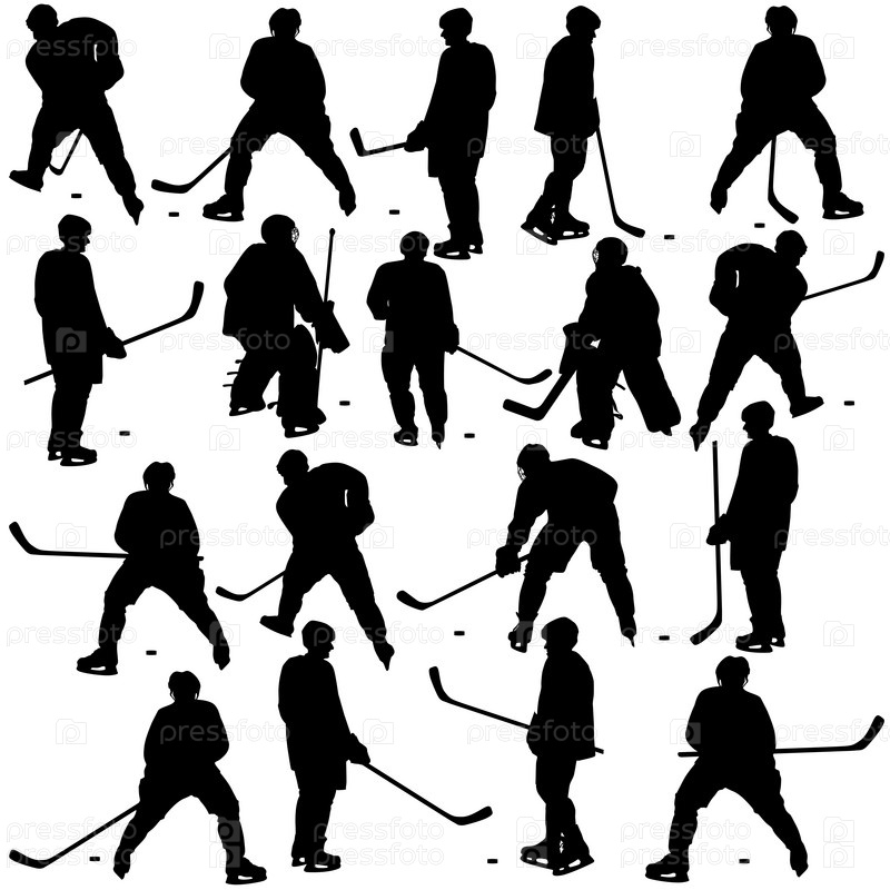 Набор силуэтов хоккеистов. Изолированные на белом. Векторные иллюстрации