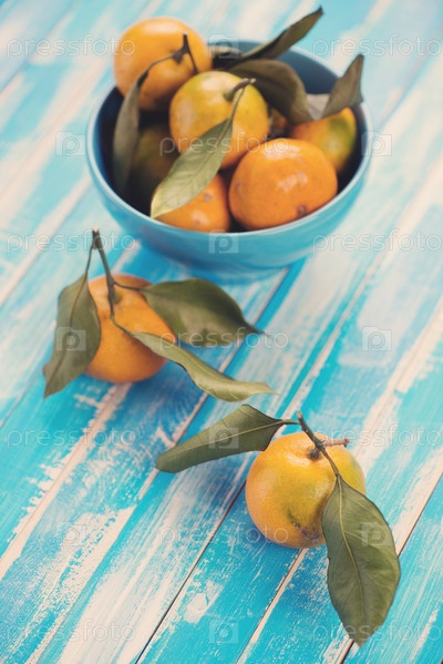 Спелые мандарины с листьями