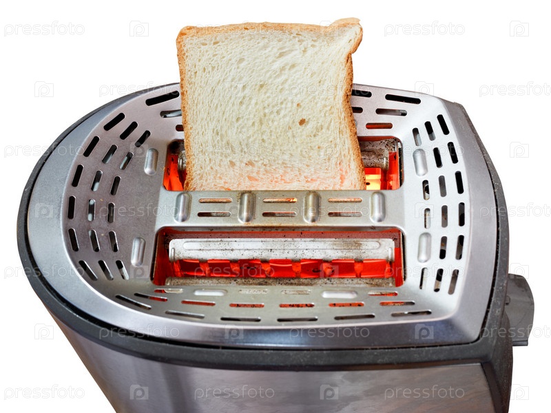 Ломтик хлеба в металлическом тостере