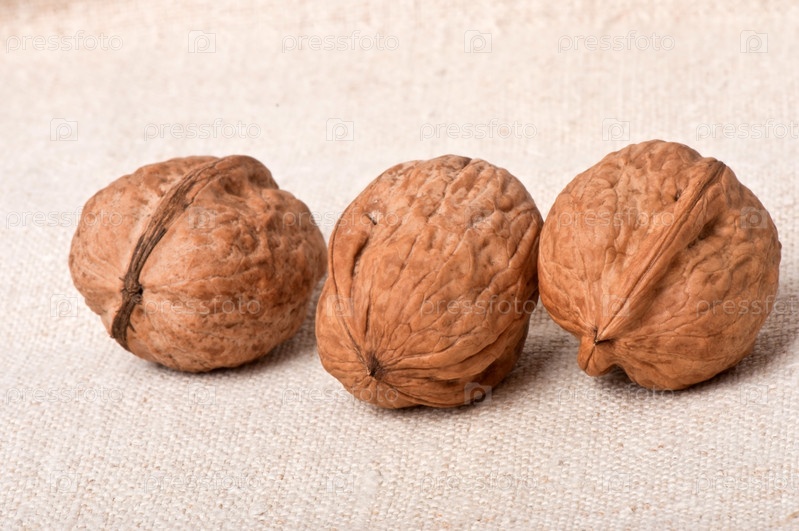 Грецкие орехи на фоне старой ткани