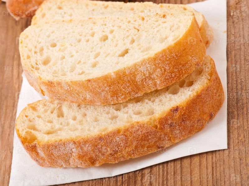 Ломтики белого хлеба на деревянном столе