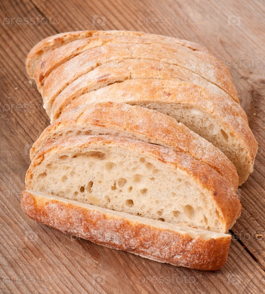 Ломтики белого хлеба на деревянном столе