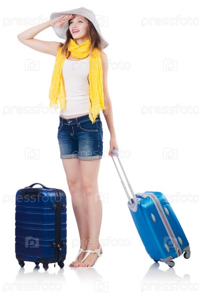 Женщина собирается на летние каникулы, изолировано на белом фоне