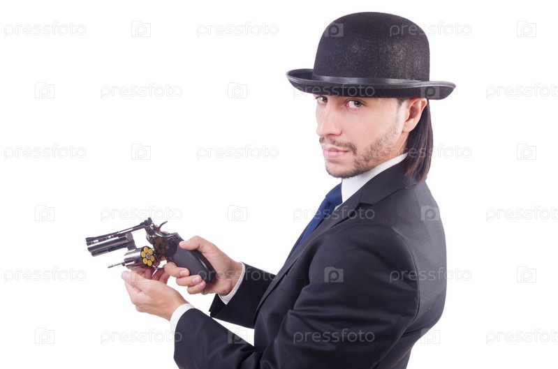 Человек с пистолетом, изолированный на белом