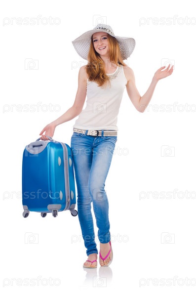 Женщина собирается на летние каникулы, изолированная на белом фоне