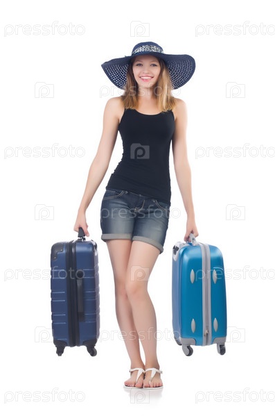 Женщина собирается на летние каникулы, изолированная на белом фоне