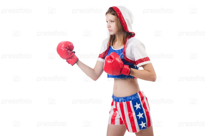 Женщина боксер в форме с символикой США