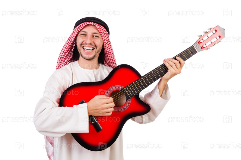 Араб с гитарой, изолированный на белом