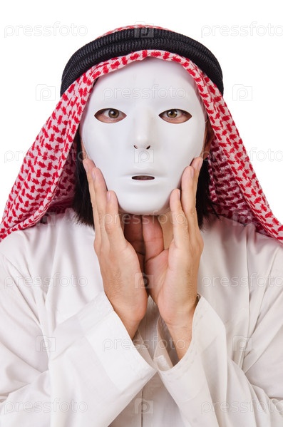Араб в концепции лицемерия на белом фоне