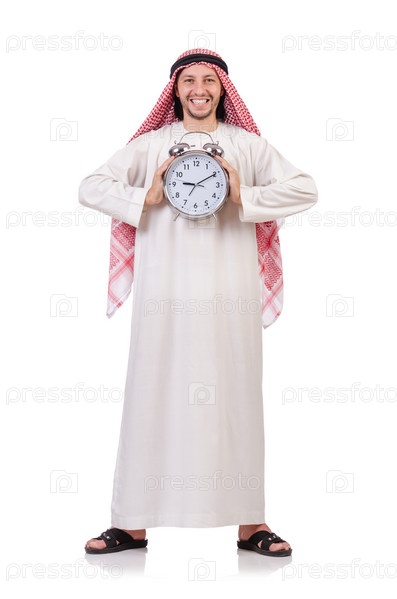 Арабский мужчина в концепции времени на белом фоне