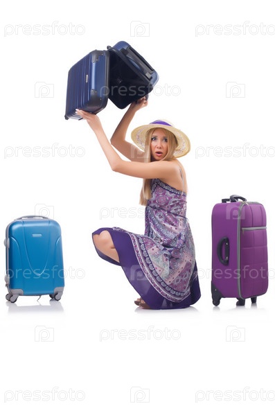 Женщина собирается на летние каникулы, изолированная на белом