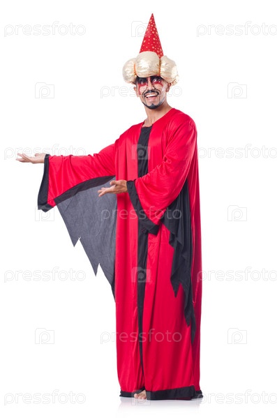 Фокусник в костюме, изолированный на белом