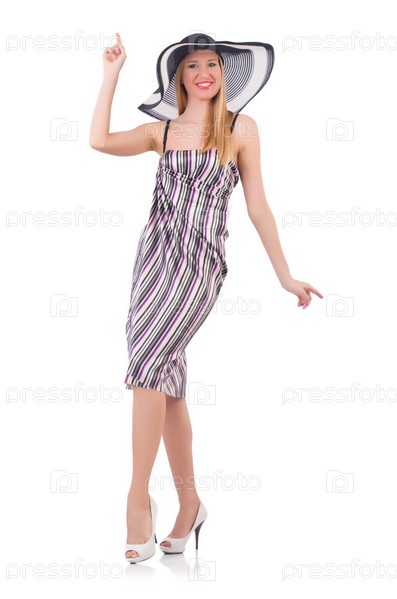 Женщина собирается на летние каникулы, изолированная на белом