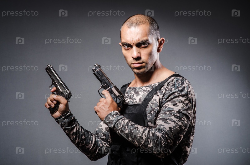 Солдат с пистолето на темном фоне