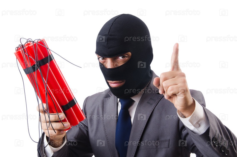 Террорист с динамитом, изолированный на белом