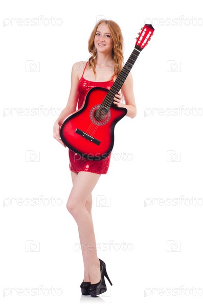 Гитаристка, изолированная на белом фоне