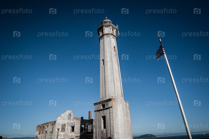 Остров Алькатрас с флагом в Сан-Франциско, США,