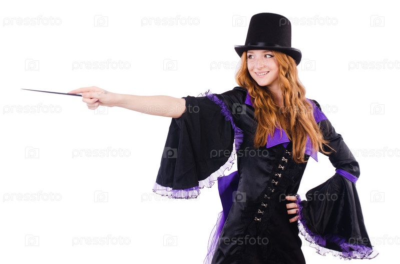Женщина маг, изолированная на белом фоне