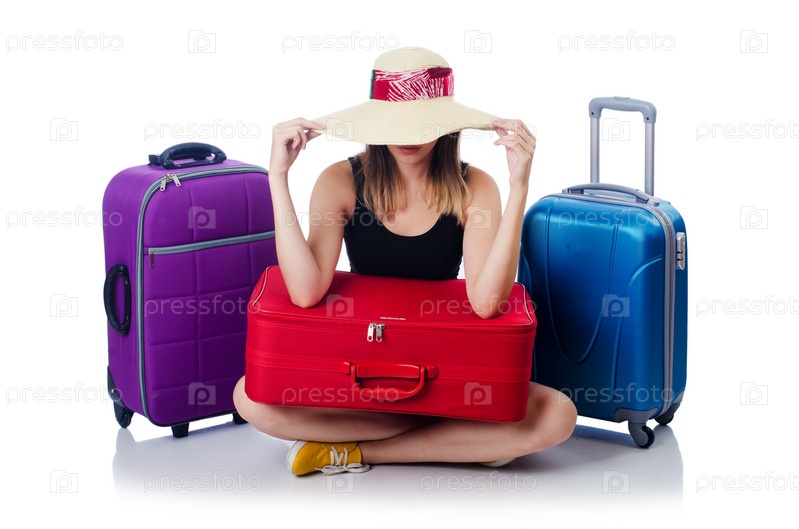 Женщина собирается на летние каникулы, изолированная на белом